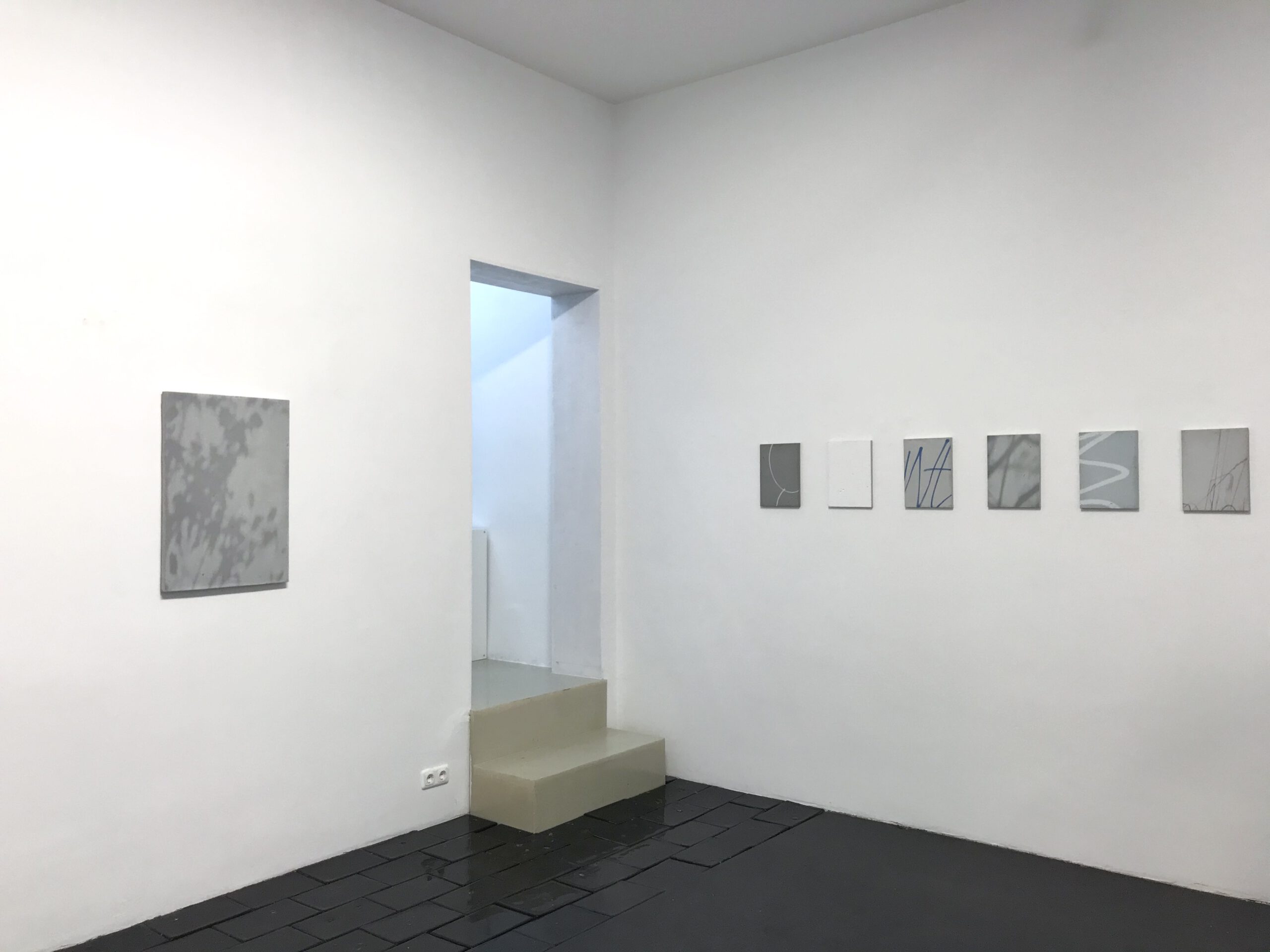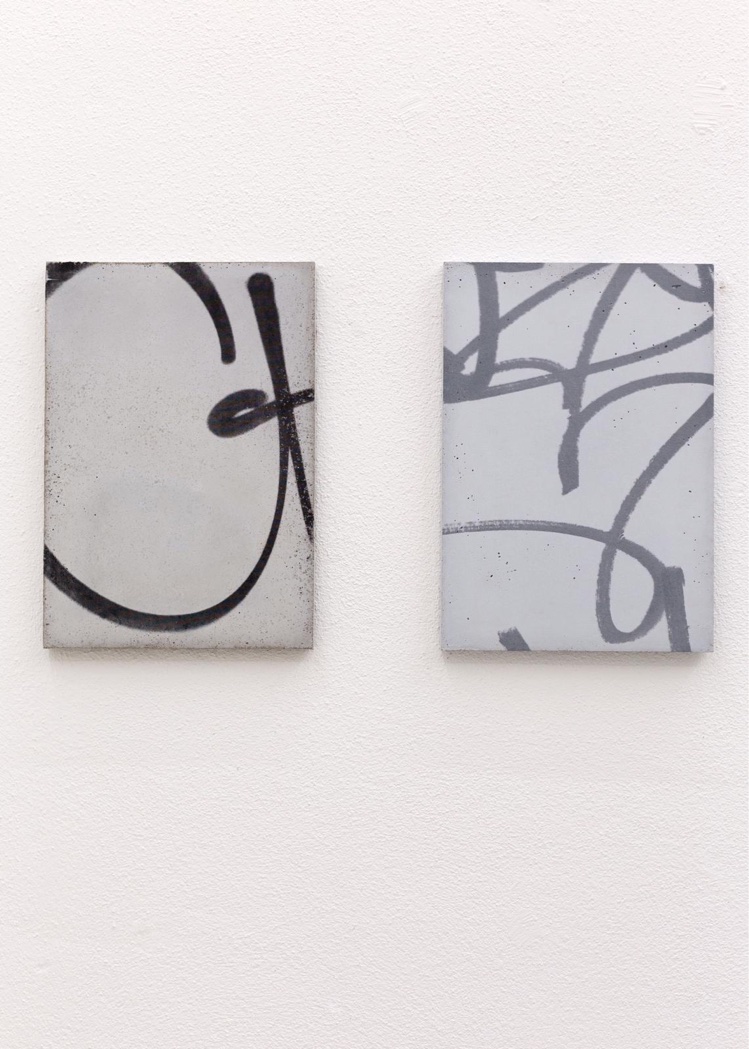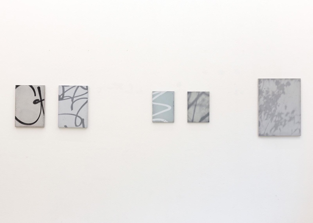 Schattenwürfe auf Architekturen, Fassadenstrukturen und darauf hinterlassene Graffiti, Schriftzeichen an Wänden – die Spuren des Alltags im öffentlichen Raum ziehen an uns vorbei, während wir ihnen kaum weitere Aufmerksamkeit schenken. Für Xenia Fumbarev sind diese flüchtigen Momente der Ausgangspunkt ihrer Bildmotive. Durch Auswahl und Bearbeitung, Verfremdung und Variation von Fotografien schafft sie neue Bilder und überträgt diese mit Hilfe der Siebdrucktechnik auf Betontafeln. Rasterpunkte treffen auf die Oberfläche des Bildträgers – als abstrahierte Überreste des vormals farbigen Lichtes.